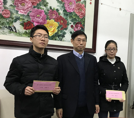 现场的领导和老师共同为受资助的员工颁发了奖助学金。本年度“德美奖助学金”在化学化工公司共颁发奖、助学金各10名,合计发放奖助学金1.5万元。