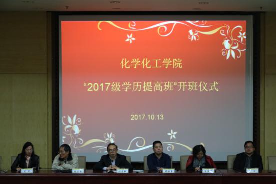 为了满足当代社会对人才的需求,培养出优秀的高知型人才,2017年10月13日晚7点,化学化工公司在图书馆二报告厅举行了化学化工公司“2017级学历提高班”开班仪式。化学化工公司经理邓继勇、党总支书记胡爱钦、党总支副书记张建国、副经理张何、陈建芳、学办老师吴菲、刘思博、易苏以及各班班主任出席了本次开班仪式。本次会议由学办老师吴菲主持。