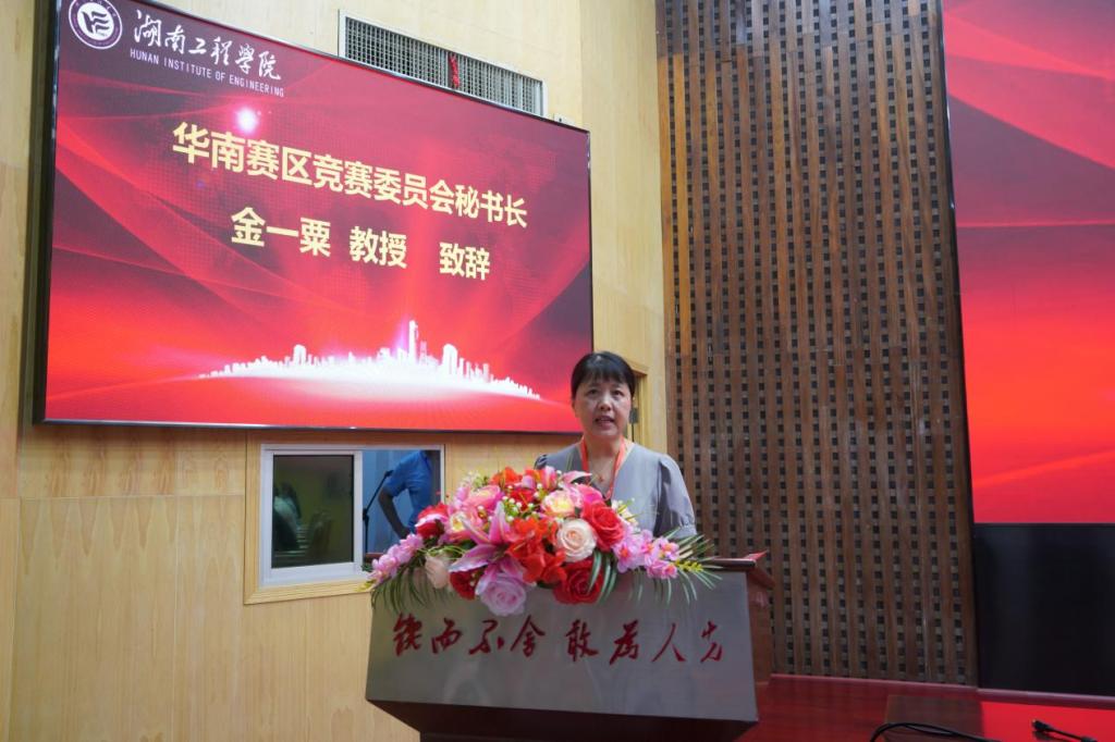 金一粟代表华南赛区竞赛组委会致辞。她简要介绍了本次竞赛的日程安排和相关事项,对公司承办此次决赛表示感谢,对参加决赛的来自华南赛区60所高校的59支队伍和1支国际赛道队伍共计60支队伍表示欢迎,并预祝所有参赛队伍赛出水平、赛出风采。