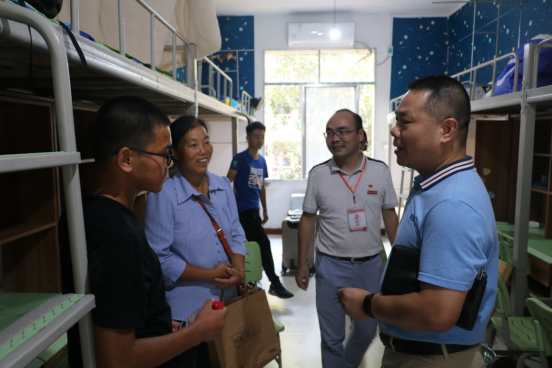 9月15日下午,太阳集团tyc33455cc经理邓继勇,党总支书记李艳红,党总支副书记陈镇在辅导员老师李娥君、易苏的陪同下到新生宿舍看望2019级新生。