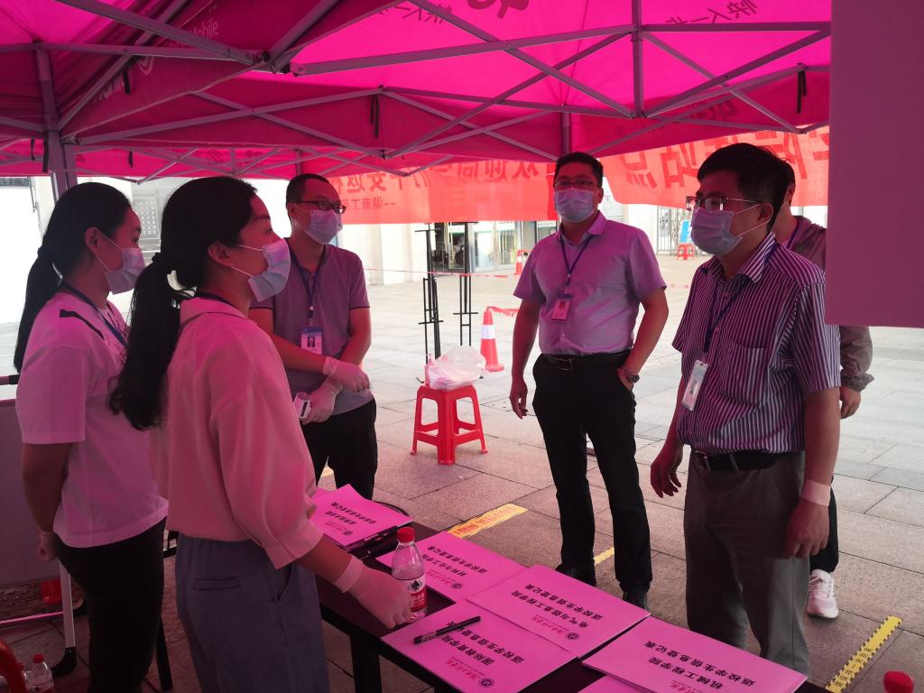 从5月19日零时起至20日24时,公司所有辅导员老师奔赴湘潭高铁北站、湘潭火站车、湘潭长途汽车站接驳员工。作为员工返校第一站,员工下车后必须经过全面消毒、测温、核验身份等流程,确保出站员工人人健康,再乘坐公司大巴直接驶向校区,确保所有员工与湘潭市无任何接触;另一方面在北校区大门口,公司领导及教工党员志愿者再次为员工做好体温测量、信息登记等服务。
