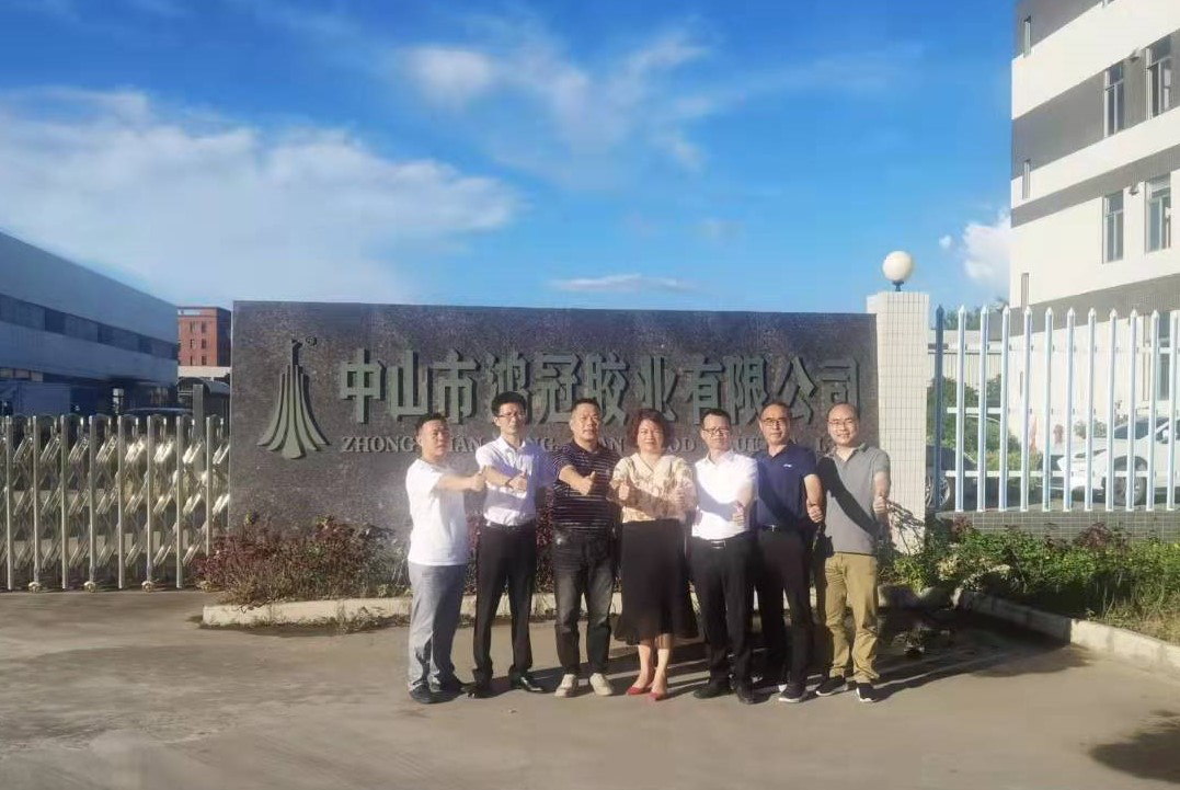 在中山民众镇,邓继勇一行来到中山市鸿冠胶业有限公司,邓继勇关切地询问了精细化工95级员工秦良岭目前的身体情况,并嘱咐其遵照医嘱,做好康复,争取早日重返工作岗位;员工黄金华详细介绍了公司目前的生产、经营及研发情况,邓继勇对员工企业能取得国内木材胶细分行业前三甲的成绩表示欣慰,希望能加强校企合作,各方面更上一层楼!