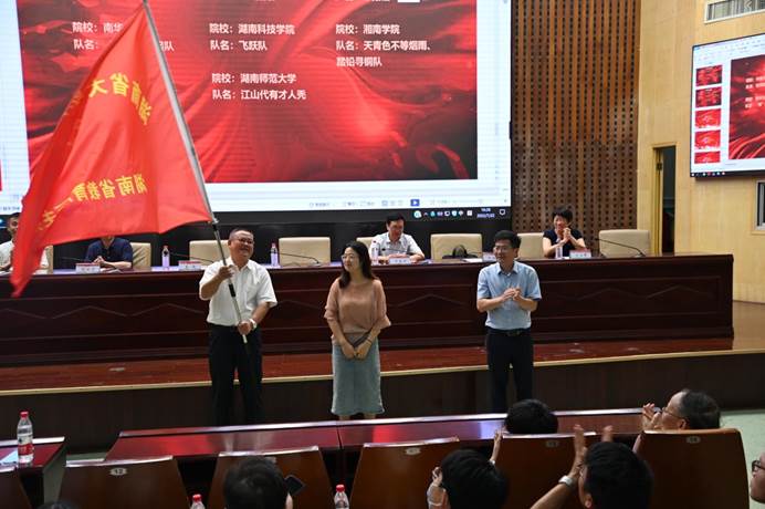 闭幕式上,大赛评审专家代表、湖南师范大学尹笃林教授对本次比赛作精彩点评。湖南省化学化工学会理事长、湖南海利集团董事长刘卫东代表冠名商对取得优异成绩的参赛队伍表示祝贺。