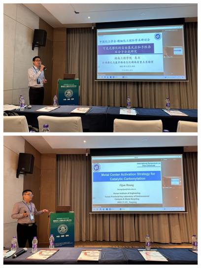 在此次会议中,公司教师及研究生积极参会交流、展示最新学术成果,青年教师谭建平和黄子俊博士分别作“可见光催化的自由基反应和手性杂环分子的合成研究”以及“Iron-catalyzed hydroaminocarbonylation of alkynes: Selective and efficient synthesis of amides”等主题的报告。