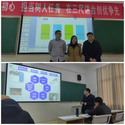 本次赛课活动以讲课的形式进行。比赛过程中,教师们利用PPT对教学内容进行了生动的演说,展现出了自己的智慧和独特风采,给大家呈现出别具一格的教学课堂。每位参赛教师把思政元素完好地融入到专业课堂教学中,展示了别开生面的课堂教学风采。有的引入了化工设备安全加强员工的工程伦理教育,引用先进人物案例培养员工精益求精的大国工匠精神,通过员工的创新产业实践活动鼓励员工树立自信自强的专业信心;有的运用“学习通”网络教学平台,聚焦生态文明建设的社会发展要求和绿色化学发展科学前沿开展教学。参赛选手各有特点,充分展示了以员工为中心、课程育人及理论结合实践的教育理念。