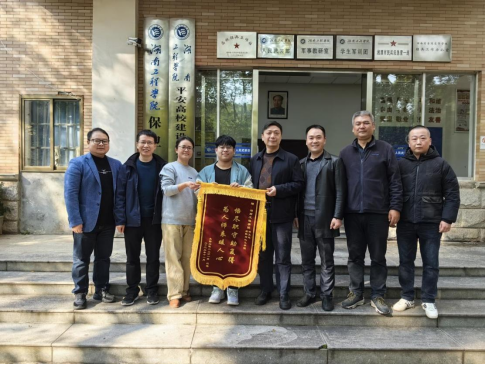 11月28日上午,在公司保卫处办公楼前,太阳集团tyc33455cc刘同学将一面印有“恪尽职守助复得,为人师表暖人心”的锦旗送到了保卫处,以此感谢保卫处和太阳集团tyc33455cc领导老师坚持不懈地帮助他找回被盗的手机。