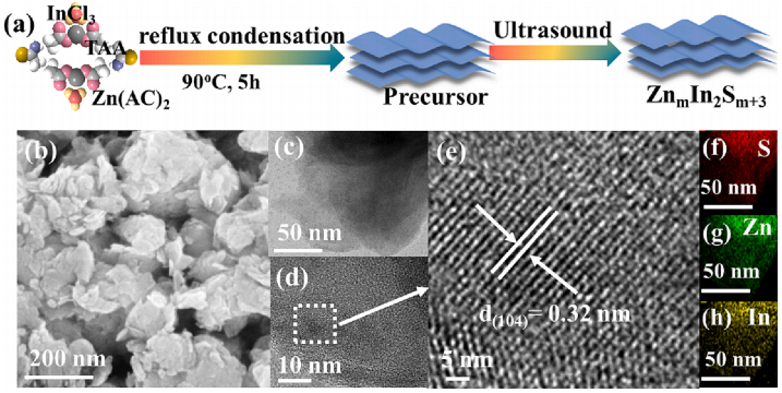 兰东辉博士紧密围绕国家重大战略需求,以科技创新支撑“碳达峰碳中和”工作,开展光催化产氢研究,他们采用简单的低温水热法制备了片状ZnmIn2Sm+3(m = 1-3)(ZnIn2S4, Zn2In2S5和Zn3In2S6)。Zn2In2S5表现出优异的压电光催化全分解水性能(H2/O2: 4284.72/1967.00μmol g-1h-1),是光催化性能的1.77倍。此外,优化后的Zn2In2S5的D2O分解性能得到了显著的提高。ZnmIn2Sm+3中Zn2In2S5优异的性能主要归因于Zn2In2S5中Zn-S键的结构收缩和局部极化增强了压电响应和表面电荷积累,有利于电荷转移,降低了水的活化能。该工作为设计新型压电光催化剂提供参考。