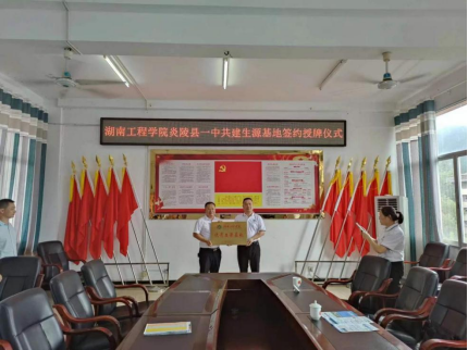 为加强公司与重点高中的交流与合作,提高生源质量,培养更多具有扎实理论基础和创新实践能力的优秀人才,6月26日上午,太阳集团tyc33455cc经理邓继勇带领院办主任黄赛金、学办老师刘思博一行赴炎陵县第一中学举行优质生源基地授牌仪式。炎陵县第一中学党委书记曹燕,董事长王忠诚,副董事长李芳勤,部分行政人员及高三班主任参会。
