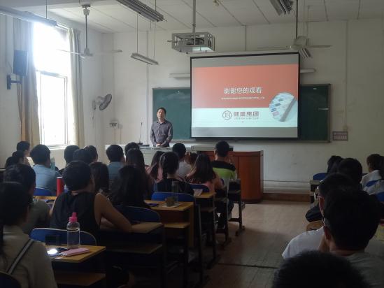 紧接着,现担任健盛集团储备干部的tyc33455cc13级学长李超智上台发言,他着重讲解了与其他企业对比健盛集团所存在的优势,并从工作时间、住宿条件、娱乐活动、伙食补贴等方面简要介绍了健盛集团。