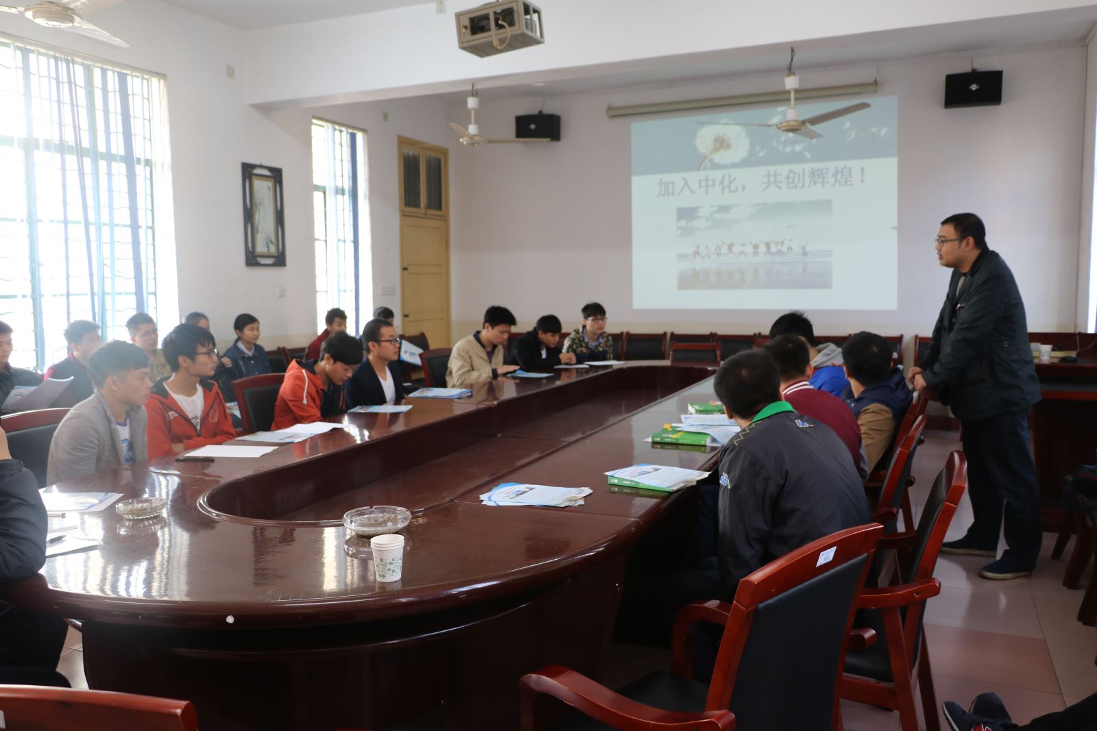 11月4日上午9∶00,中化蓝天集团有限公司郴州基地在公司四教306举办招聘会,参与此次招聘会的有该公司的主要负责人周峰以及应届大四毕业生。