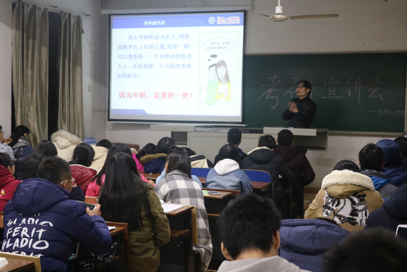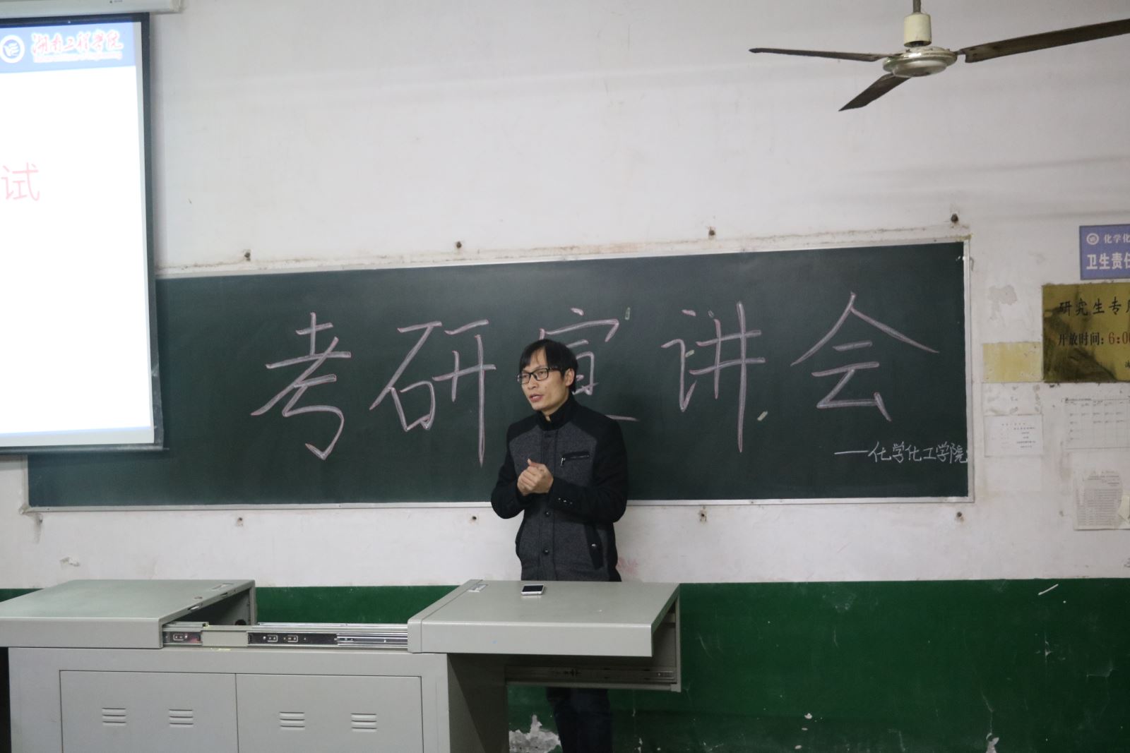 11月25日晚7点,化学化工公司应用化学专业在四教301举办考研宣讲会。本次宣讲会的主讲人为化学化工公司博士吴锋景。应用化学专业全体同学到场聆听。
