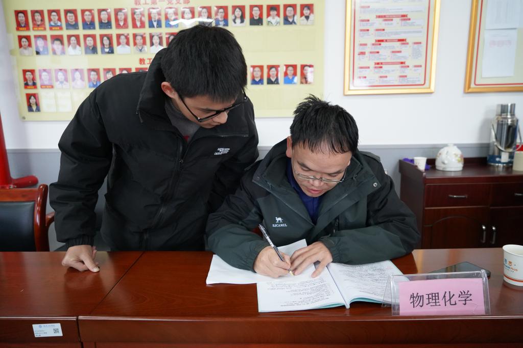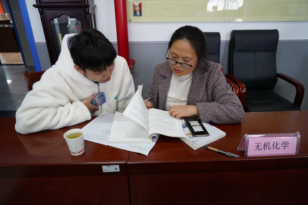 “原来这道题我错在这里,现在我会解了,谢谢老师为我答疑解惑。”辅导现场,一名考研员工从辅导老师身前拿回三本一寸多厚标满记号的习题册后匆匆离开,在一旁等待的其他员工立刻拿着试题集迎上前去咨询。12月12日下午,公司考研学子在材化楼A304参加党员教师一对一答疑辅导服务,这是该公司近期为考研学子提供的暖心服务之一。