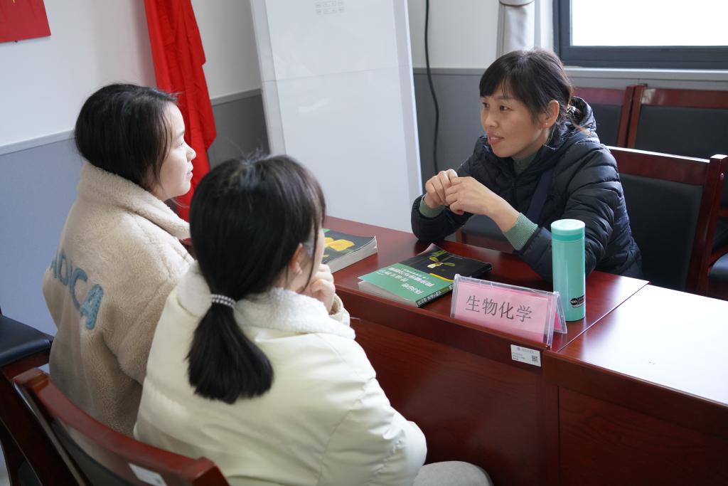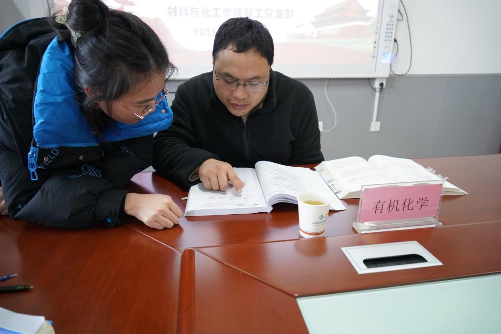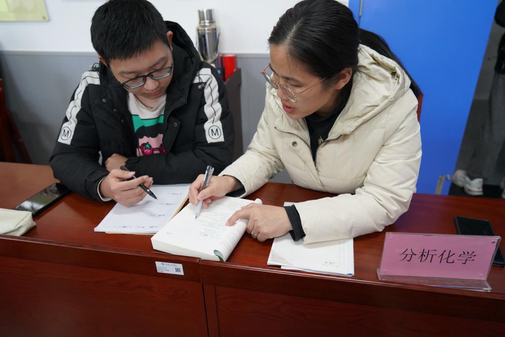 辅导现场,教工一、二支部的党员老师分成无机化学、有机化学、分析化学、物理化学、化工原理、生物化学、英语一等7个科目开展答疑活动。“老师,请您帮我看看我这个解题思路对不对?”“老师,我最近复习压力有点大,原来会的题目做第二遍时又做错了,请您看看这个帮我辅导一下这个反应过程。”“考试时间临近,我的专业基础薄弱,希望老师帮我理顺复习重点。”7名党员老师结对帮扶的学业预警员工也赶到现场,希望老师辅导期末考试科目中的疑难点。教工党员们依靠自身扎实的专业知识,为考研员工们暖心辅导,帮学业困难员工梳理复习思路,答疑解惑。“你们在考研复习过程中要合理安排,充分准备,调整心态,一定可以收获自己满意的成绩。”老师们对考研同学鼓励道。