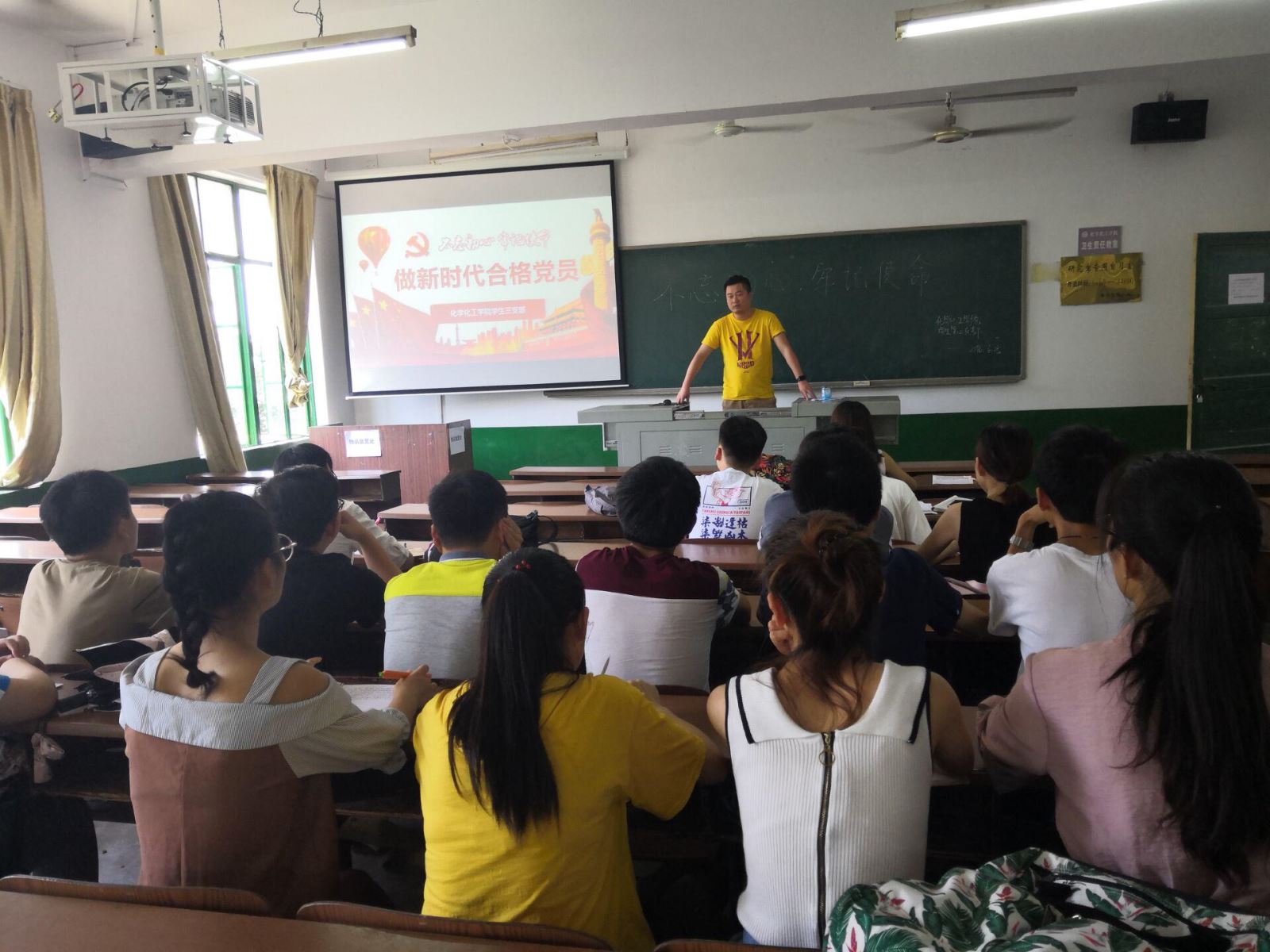 为进一步帮助支部员工党员深刻贯彻领会十九大精神,加强支部党员教育,2018年6月25日中午12点半,化学化工公司员工三支部于四教209开展了以“不忘初心、牢记使命” 为主题开展学习活动,让大家明确“初心”,坚定信念,牢记身上所肩负的使命,争做新时代的合格党员。党支部书记刘思博老师主持,员工三支部全体员工党员参加了本次学习会议。