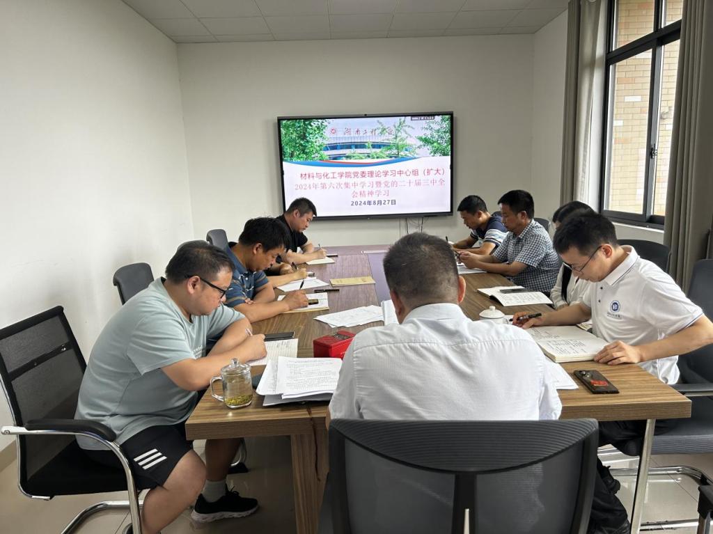 2024年8月27日,公司党委理论学习中心组在318会议室举行了党的二十届三中全会精神专题学习会(2024年第六次学习)。此次会议由党委书记徐粤宇主持,党委理论学习中心组成员及各党支部书记参与。