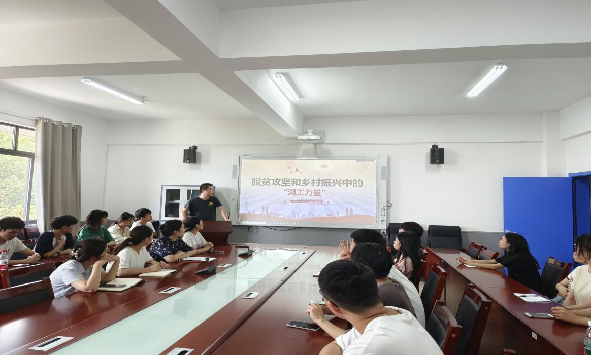 辅导员刘思博以“脱贫攻坚和乡村振兴中的‘湖工力量’”为题讲授微党课。他围绕习近平总书记精准扶贫重要思想,目前取得的脱贫攻坚战决定性成果,联系他自己从2019年12月至今年5月赴怀化市新晃县新村村开展驻村扶贫工作和在怀化市会同县开展乡村振兴工作期间的所见所闻、所思所悟作专题辅导。“为党育人,为国育才”,刘思博激励希望在座的员工党员也要以回应国家建设发展为目标,立志成为栋梁之材;以回应社会健康和谐为目标,践行成为致用之才;一回应人生积极向上为目标,磨炼成为上进之才;以回应时代伟大变革为目标,突破成为创新之才。
