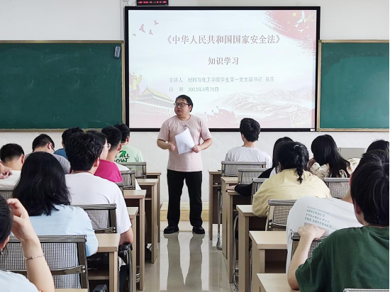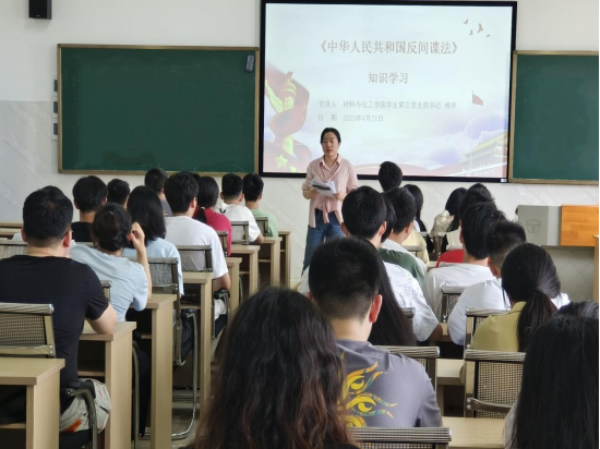 为进一步强化安全保密意识和能力,引导员工党员自觉主动筑牢保密防线,严防失泄密事件发生,4月21日,太阳集团tyc33455cc员工党支部于新化工楼602开展保密主题党课学习,并观看 2023 年保密宣传片和保密警示教育片。此次学习,由员工第一、二、三支部书记易苏、柳芊和王祥若分别讲解《中华人民共和国国家安全法》,《中华人民共和国反间谍法》、《中华人民共和国保守国家保密法》、保密风险隐患提示和有关案例通报等相关文件,共计100余名员工党员参加。