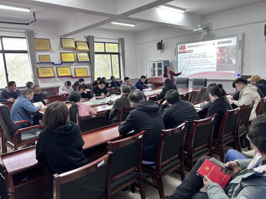 陶强以“治国理政——创新实践的理论精华”为题,从“坚持党的全面领导是解读中国成功之路的首要密钥、把为民造福作为中国共产党执政最重要的政绩、跳出历史周期律必须坚持自我革命”三方面进行阐述。他指出“坚持人民至上”,这是党的百年奋斗的历史经验之一,这条历史经验体现党的根本宗旨,标明党的政治立场,揭示党的利益取向,反映党的群众路线,是党践行初心使命的依循,是党不断前进的动力,是党赢得人民的原因。他强调自我革命是中国共产党自诞生之日起就具有的禀赋,党的百年奋斗实践贯穿自我革命精神,作为党员要勇于自我革命,敢于直面问题,发挥湖工力量,共同把今年公司工作重点之一——“申硕”这篇文章做好。
