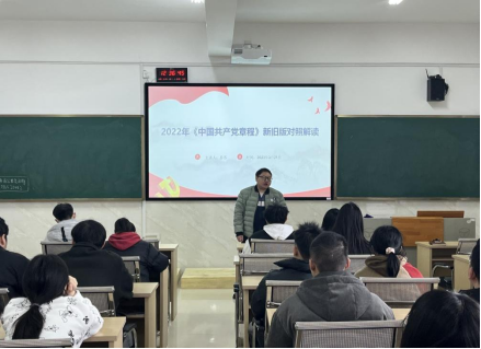 为持续营造浓厚学习宣传氛围,深化理论学习、凝聚思想共识,把党员干部的思想统一到党的二十大精神上来,把力量凝聚到党的二十大各项工作中来,3月21日,太阳集团tyc33455cc“新学期第一堂党课”在新化工楼602开讲,此次党课是员工党支部书记以“2022年《中国共产党章程》新旧版对照解读”为题为全体员工党员上的党课。