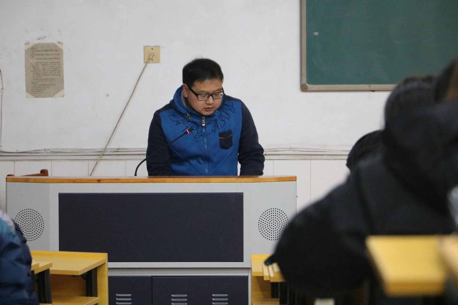 胡爱钦书记以“汇聚在中国共产党的旗帜下”为题,列举革命烈士的英勇事迹,指出中国共产党的牺牲与奉献精神,我们应当以此为榜样,为振兴祖国、建设祖国贡献我们的青春力量。随后,易苏向同学们讲述了共青团湘潭市第十六次代表大会的大致内容,并指出“青年的气质、美感和去留决定了城市的气质、美感与兴衰,同时表达了希望我们老员工能乐学修身、树立正确目标的美好愿望。随即又进行了一场风险防范专项教育,易苏为我们介绍了校园贷的危害,再三叮嘱我们应该抵制校园贷款,提升自己的财产安全防范意识,不因校园贷而酿成惨剧。最后,他还给我们讲了宿舍陆续发生使用大功率和被盗、失窃等问题,这类事件的发生警示着我们要时刻注意寝室安全,以确保自身及财产安全。