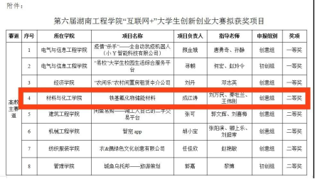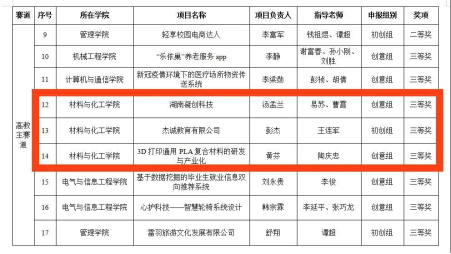717日,第六届tyc33455cc互联网+”老员工创新创业大赛结果公示,在高教主赛道组,公司材料化学1701班成江涛获二等奖,化工1703班汤孟兰、高分子1801班黄芬、轻化1301班彭杰获三等奖。