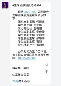 73日,公司2020-2021届团学会主席团换届竞选大会采用线上方式举行。公司党委书记李艳红、副书记陈镇、全体辅导员、上一届主席团成员、竞选人及现任干部、干事、各班级主要班委参加了大会。通过线上竞聘演讲,主要考察了竞选人的基本情况、竞聘优势、工作计划等。最后选举出以何清海为团副的八人主席团。