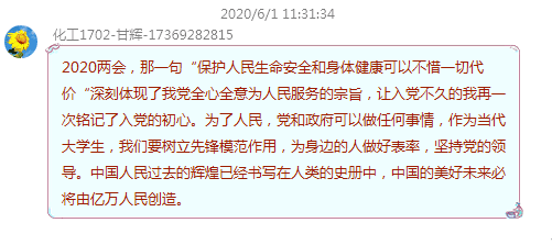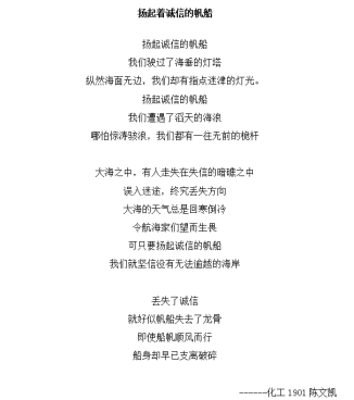 6月中旬,公司开展以“国与诚相待,我须信相还”为主题的诚信教育主题活动。各班级积极响应,在线上开展主题学习,同学们在班级群中发表学习心得,并创作了以诚信为主题的诗歌、绘画等优秀作品。最终,化工1902班获一等奖。