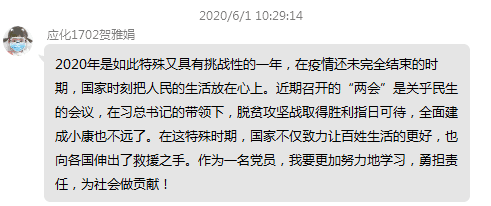 6月1日,太阳集团tyc33455cc三个员工党支部开展了线上学习今年全国“两会”精神主题党日活动。会上,全体党员集中学习了《2020年两会特别报道:习近平的两会时间》、《政府工作报告》、微视频《人民至上》、2020年全国两会大型融媒体专题:《风雨无阻 奋勇向前》等内容,每位党员认真学习领悟,对重点内容进行摘抄、分享,实现线上线下同频共振,把思想和行动统一到习近平总书记重要指示和“两会”精神上来。