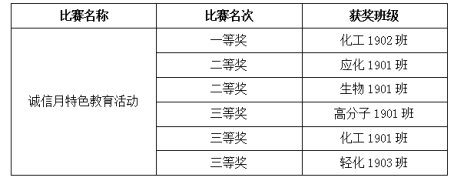 生物工程1901班、材料化学1801班、轻化工程1903班、轻化工程1802班、化学工程与工艺1901班、应用化学1903班、生物工程1902班
