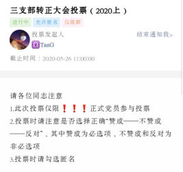 5月23日,太阳集团tyc33455cc召开线上员工党支部大会。在本次大会中,员工第一、二、三党支部共22名预备党员经过一年的预备期考察全部转正。