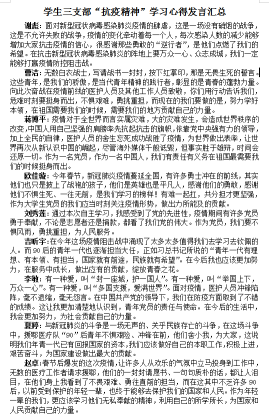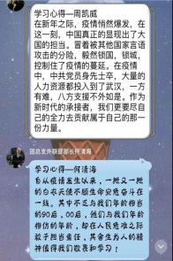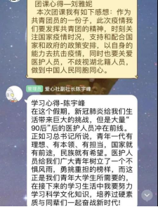 4月26日,响应校团委“五四精神 传承有我”主题活动号召,公司团总支书记柳芊给全体员工干部主讲了一次主题为“战‘疫’中的中国制度和中国精神”的特别网上团课。课后,同学们纷纷发表了学习心得。