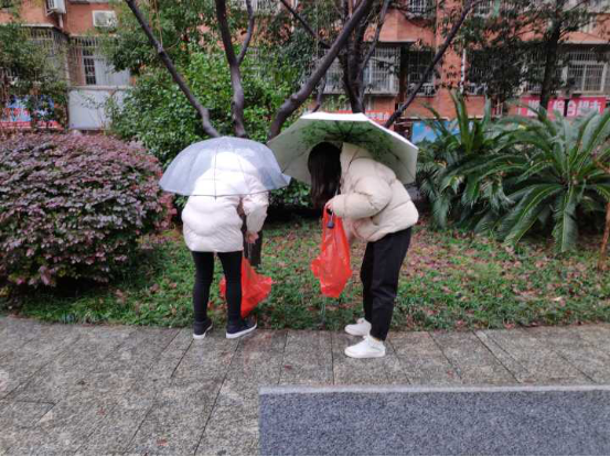 为让大家能够在干净整洁的社区红红火火过大年,爱心社志愿者在淅沥的小雨中进行一个下午的清洁工作。下午三点二十分,爱心社志愿者们来到了盘龙社区,准备进行活动。社区工作人员交代了相关事项,为志愿者们分发了夹子等清洁工具后,爱心社志愿者们拿起夹子,撑着伞,迎着小雨和冷风就开始进行清扫活动。街道上的塑料垃圾被志愿者们一一拾起,还清理了别人不小心扔进草丛里的垃圾,所有的垃圾都被分好类夹进了不同的垃圾袋。雨水并没有阻挡志愿者们前行的脚步,他们不断地重复着一件事情,弯腰,拾起,放进垃圾袋。最后全部清理干净后,志愿者们把垃圾袋放入了垃圾桶中。过程中志愿者们脸上流的不只是雨水还是辛苦的汗水,不过当他们看到干净美丽的社区环境后,都流露出了开心的笑容。尽管天公不作美,不过在志愿着们共同的努力下,盘龙社区变得更加干净整洁了,为社区居民提供了一个更加美好的生活环境,迎接新年的到来。即使小寒还没过去多久,凛冽的寒风无情地击打在志愿者的脸上和手上,但爱心社的志愿者们不畏寒风和艰难,为社区环境做出自己的贡献诠释了雷锋精神的意义。