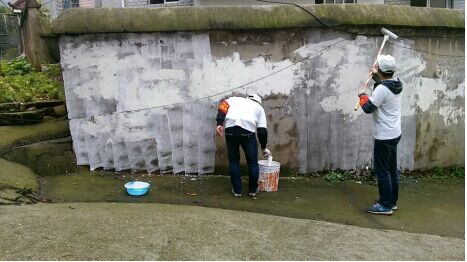 11月21日下午2点,爱心社组织志愿者前往盘龙社区联系当地居委会。志愿者在居委会成员的配合下一同开展清除牛皮癣,粉刷社区围墙的志愿活动。志愿者们在活动中没有抱怨辛苦,个个都干劲十足,拿起油漆桶和粉刷器就开始粉刷社区墙面。一组志愿者累了就还换另一组志愿者,他们不但没有抱怨辛劳,还苦中作乐互相比拼起来,欢声笑语间,将社区墙壁粉刷一新。