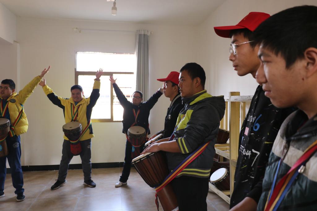 为让大家更多地了解托养中心,老师热情地向志愿者分享着托养中心的同学们之间发生的趣事,介绍平时开展的活动以及同学们的兴趣爱好。在二楼,有两名志愿者在老师的推荐下参加打鼓学习,在教学老师的指导下,大家时而挥动双手练习动作,时而拿起鼓槌敲打。志愿者享受着与同学们分享作品时的喜悦,带着好奇心去了解孩子们的日常活动,在学习的过程中与同学们进行心与心的交流,在欢乐氛围中共同体会生命的美好。当爱心社的同学们离开,每一位托养中心的同学都依依不舍,志愿者们也是不愿离开,在活动中绽放的一个个笑脸成为彼此最美好的记忆。