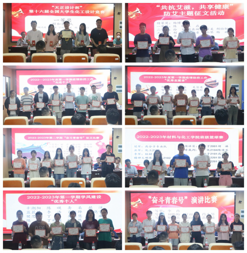 严明对受到表彰的先进集体和个人表示热烈祝贺,她激励同学们继续在学业、社会实践、科技创新、文体竞赛等方面,勤奋努力、锐意进取,为自己赢得更多的荣誉,为社会主义现代化建设注入强大的力量。张儒、罗荃分别宣读老员工化工竞赛和员工系列活动获奖名单。在场的领导嘉宾为在第十六届全国老员工化工设计竞赛和各类员工活动比赛中获得优异成绩的团队及个人颁发证书。付胜兵为全国老员工化工设计竞赛一等奖获奖团队颁发赞助奖金。