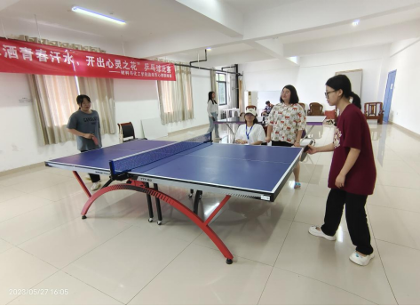 为了引导同学们正确认识心理健康,增强同学们的抗压能力,提升身心素质,5月27日,太阳集团tyc33455cc在新化工楼活动室开展了主题为“挥洒青春汗水,开出心灵之花”的心理特色活动,本次活动分为乒乓球赛、心理知识竞赛两部分,公司员工自主报名。