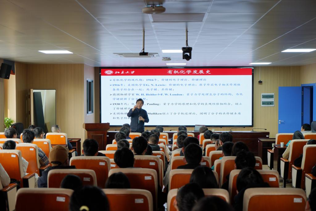 同时,裴坚教授与同学们探讨了学习有机化学的方法,他指出,希望同学们掌握有机化学的两个基本概念—轨道和能量。同时裴教授通过身边真实案例,阐述了问题导向的学习方法,尤其,他在讲“重排反应”时,通过“搬家”的比喻让同学们立刻就理解了反应的本质。阳海处长表示,裴教授不从官能团部分开始教学,是颠覆式的教学模式,值得我们每个人学习。