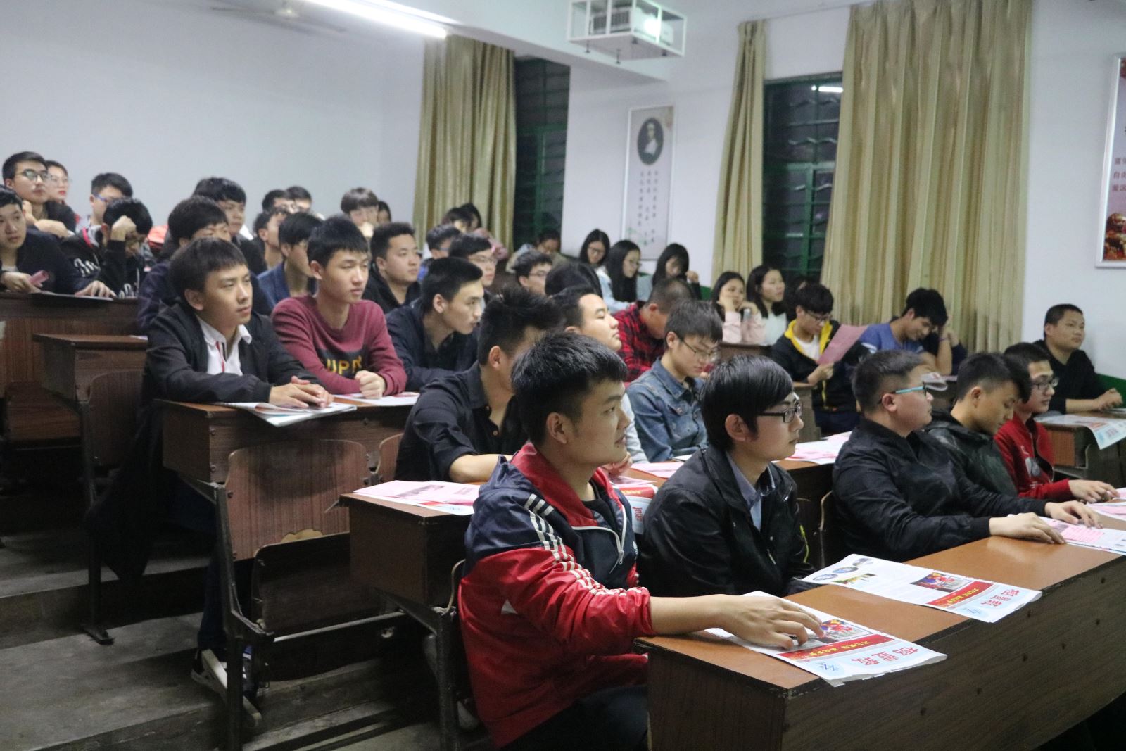 2018年4月26日晚上7点30分,英德极丰有限公司在公司4教102举行了校园招聘宣讲会,公司人力资源部经理黄成军作为主讲人,一同前来的还有公司优秀员工朱志明。