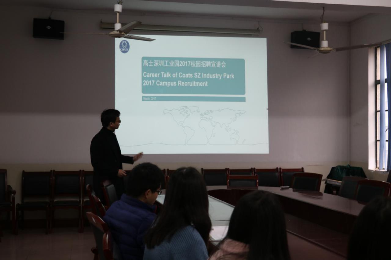 3月16日早上9:00,高士集团于公司四教 306举行招聘会,此次招聘会由高士集团深圳区的经理周先生作为主讲人,此次招聘面向范围广泛,包括了化工,纺工以及机械工程专业的员工。