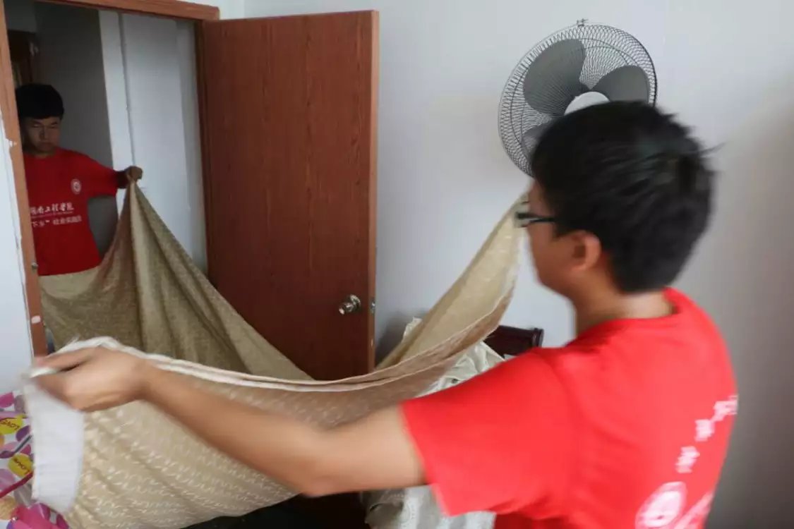 七月十三日早上八点四十,化学化工公司青年志愿团队在团队指导老师易苏的带领下开启了暑期“三下乡”社会实践活动的第三天历程。天公作美,在连续两天的炎热天气过后,迎来了一个大阴天。这对我们的志愿者来说是可遇而不可求的。今天的志愿活动相比前两天可要轻松不少,将院内卫生打扫干净后,今天便是整理内务。虽说整理内务是一件简单事,但在一个刚搬迁的敬老院内整理内务可是一个细活,我们的志愿者们无论男女都在仔细认真的为老人们摆放房内东西,有的还在询问老人们该如何摆置才能让他们生活的更舒适,看起来更雅致。而我们慈祥可爱的老人们更是十分欢喜的与志愿者们讨论起屋内摆设来了,志愿者们也是很热情大方地同老人们开着玩笑,逗得老人们合不拢嘴。整个敬老院内一片欢声笑语,场面也十分温馨有爱。临近中午,天色已是一片灰暗,不久便是倾盆大雨,但这并没有影响我们青年志愿团队的工作热情,他们依旧在为老人们积极服务,院内萦绕着爱的暖流,在志愿者有爱的帮助下,老人们脸上洋溢着幸福的笑容。志愿活动虽然辛苦,但其中的乐趣却是妙不可言的。志愿者们在愉快中结束了今天的志愿活动。