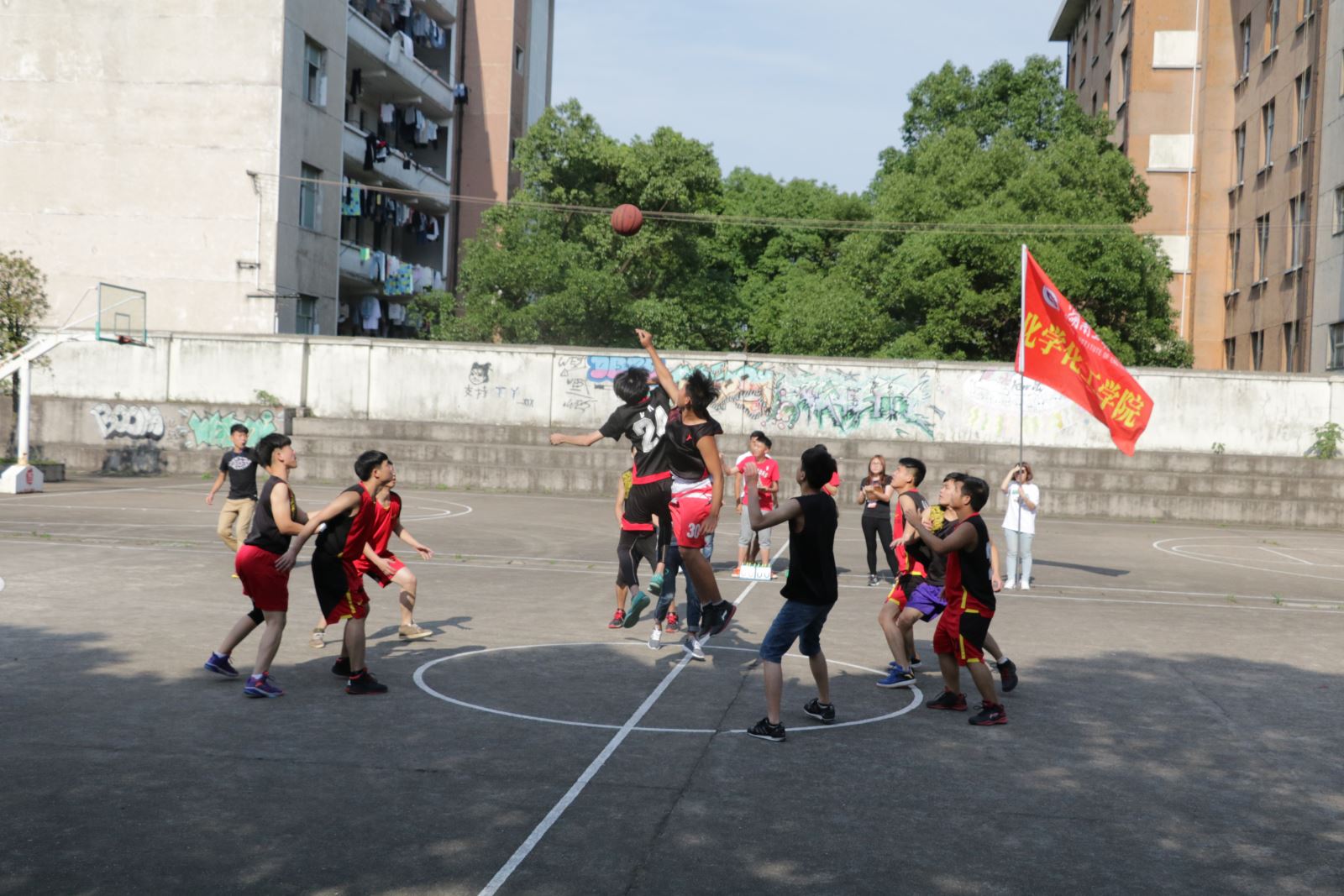 比赛开始前,操场的周围围满了前来观看比赛的同学们。参赛队员热情高涨,分区进行热身运动。随着一声哨响,决赛正式开始。现场的气氛急剧攀升,比赛的双方很快就进入了状态。在场的同学们用他们的呐喊声来表达自己的情感,为支持的队伍加油打气。比赛双方队员越来越有激情,用各种各样的篮球技巧和精准的投篮为自己的队伍贡献着分数。