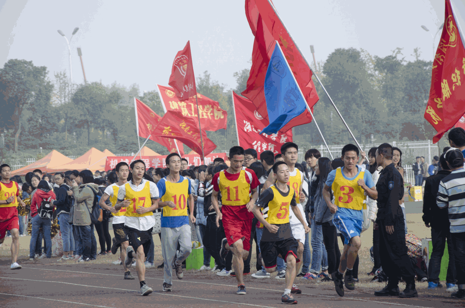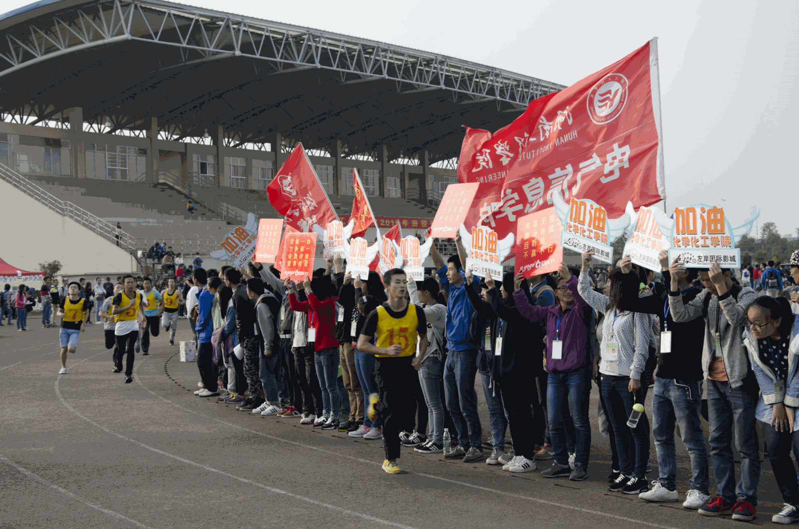 运动健儿们顽强拼搏、奋发自强的运动精神成为了运动场上一道亮丽的风景线。在为期两天的校运会上,许多运动健儿脱颖而出,男女100米、200米、800米、1500米、跳高、跳远、三级跳等项目捷报频传。在接下来的团体比赛中,化工健儿们齐心协力,勇攀高峰,分别在男女子4×400米上获得第一名的骄人成绩,此外,在男女子团体20×60迎面接力中分别获得第五与第二的好成绩。