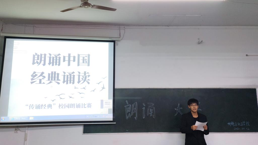 为诠释中华优秀文化内涵,彰显中华语言文化魅力,弘扬中国精神,10月12日晚7点,太阳集团tyc33455cc在四教102教室举行了“朗诵中国”经典诵读大赛。