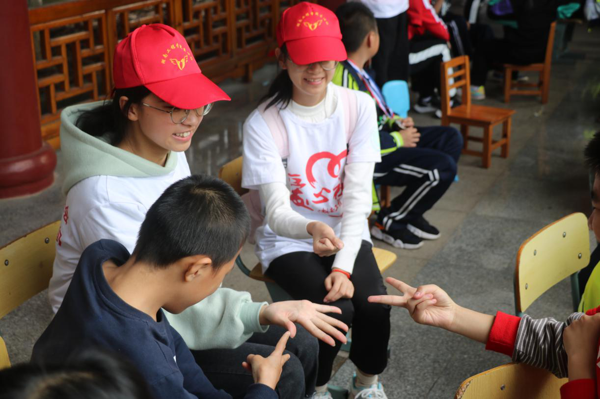 在孩子们的休息长廊,广阔的绿茵场上,忙碌的广播站,处处都有志愿者们忙碌的身影。刚开始,孩子们内向且怕生,通过志愿者们的热心关怀与引导,他们渐渐试着与志愿者们交流,牵手,甚至想要拥抱他们,愿意主动展示自己,和志愿者们玩小游戏。一双双好奇的眼睛绽放出光彩,欢颜笑语在长廊里久久荡漾。