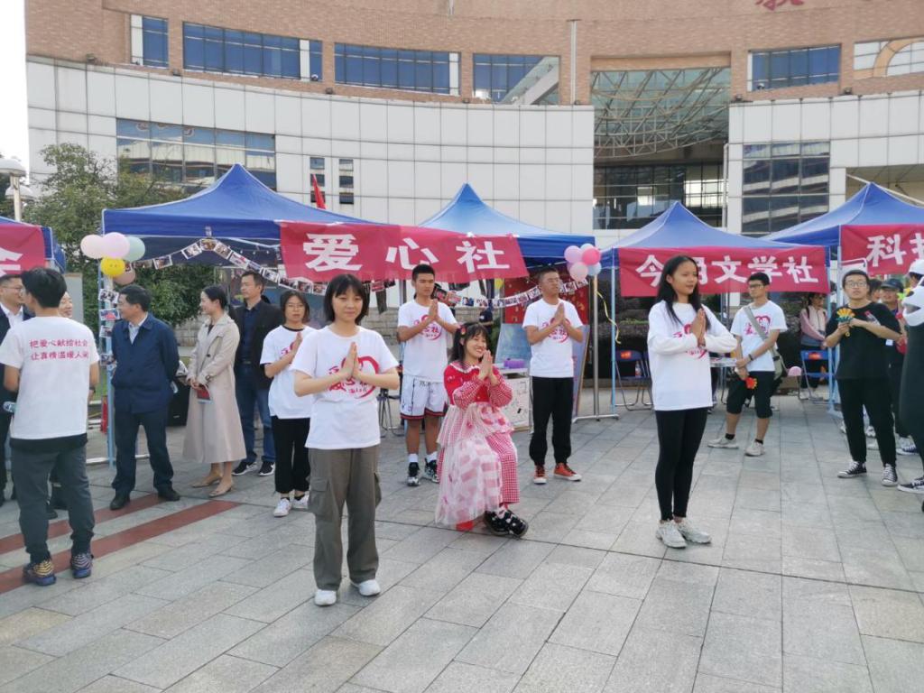 11月10日下午,“高举团旗跟党走 奉献青春创佳绩”tyc33455cc2020年校园文化暨社团文化艺术节开幕式举行。爱心社在知行广场的社团嘉年华展示区开设一个区域,展示了爱心社建社的历史、主要志愿服务活动、所取得的主要成绩的照片,并布置了旧物回收、爱心捐款、爱心义卖专区,同学们表演了“感恩的心”手语操,现场反响热烈。
