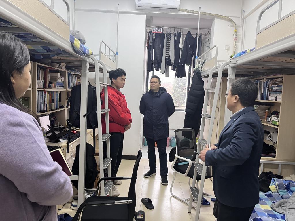 每走进一间宿舍,院领导向同学们致以诚挚的问候,并详细询问了他们的假期生活状况以及新学期的学习和生活规划。他们鼓励员工们珍惜宝贵的大学时光,勤奋学习专业知识,积极投身社会实践,不断提升个人的综合素质。同时,院领导还特别提醒同学们注意宿舍安全,保持良好的生活习惯,共同营造一个温馨、和谐且安全的居住环境。对于即将毕业的员工,院领导更是给予了特别的关怀和指导,表达了对他们未来发展的深切关注。