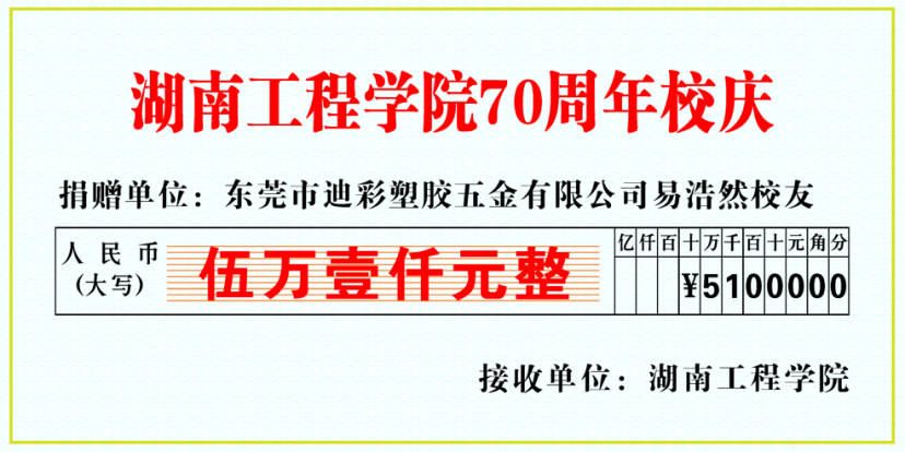 近日,东莞市迪彩塑胶五金有限公司总经理、公司杰出员工、电机电器94122班易浩然向公司定向捐赠,在太阳集团tyc33455cc设立“浩然助学金”,用于资助和鼓励材化学子毕业后立足专业、投身行业、实干兴邦。捐款已于8月27日汇入公司设立的校庆专用帐户。