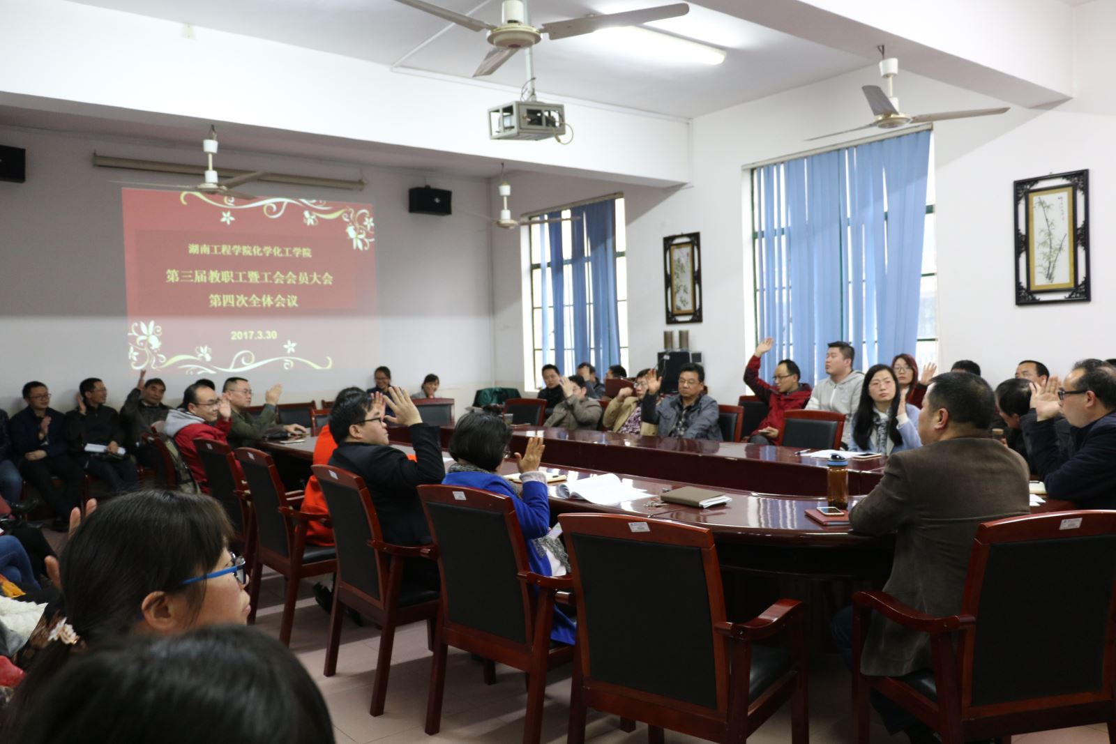 2017年3月30日下午,化学化工公司第三届教职工暨工会会员大会第四次全体会议在4教306会议室召开。化工公司全体院领导出席,58名正式代表参加会议。本次大会的主要任务是审议票决公司2017年津贴分配方案。会议由化学化工公司党总支书记、分工会主席胡爱钦主持。