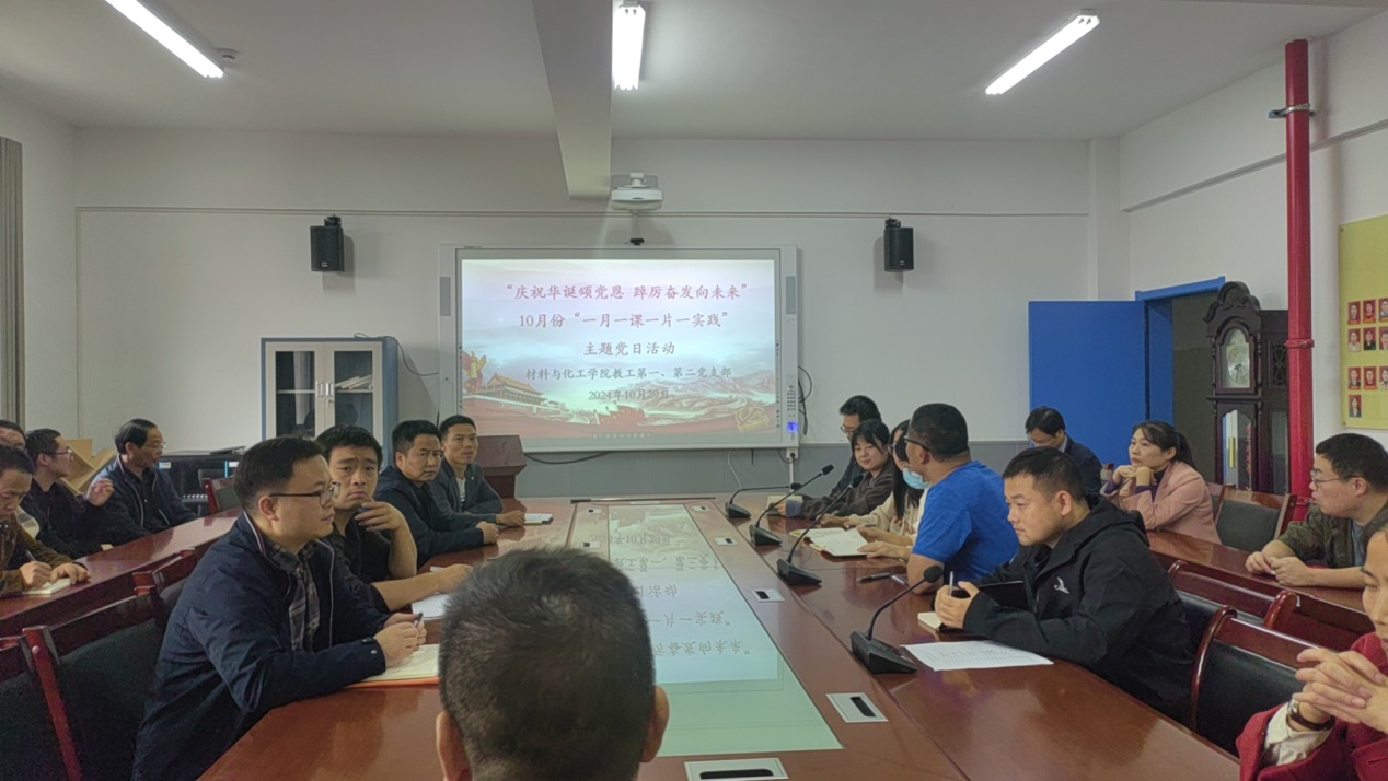 10月29日下午,太阳集团tyc33455cc教工一、二支部全体党员在支部书记廖云峰、陶强同志组织下召开了“10月份一月一课一片一实践”主题党日活动。本次党日活动主题为“庆祝华诞颂党恩 踔厉奋发向未来”,活动内容包括理论学习、党员同志上党课、观看主题党日活动学习视频等。