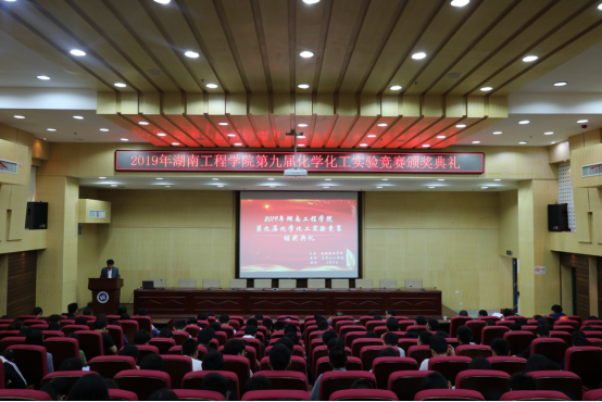 颁奖典礼开始,廖云峰老师上台发言。廖云峰首先代表化学化工公司实验中心的老师们对获奖同学表示祝贺。接着,肯定了同学们努力增强动手能力、完善细节操作的表现,同时也指出了同学们依然存在的不足。对于公司员工与其他省内高校员工在实验操作上的差距,廖云峰表示虽然逐渐缩小但仍有距离。廖云峰鼓励同学们制定详细计划,规划好目标,并为之努力奋斗;克服畏难情绪,积极面对问题。致辞的最后,廖云峰鼓励获奖的同学们再接再励,争取在省赛中取得好成绩。随后,由胡爱钦、陶连洲、傅昕、伍水生为获奖员工颁奖。